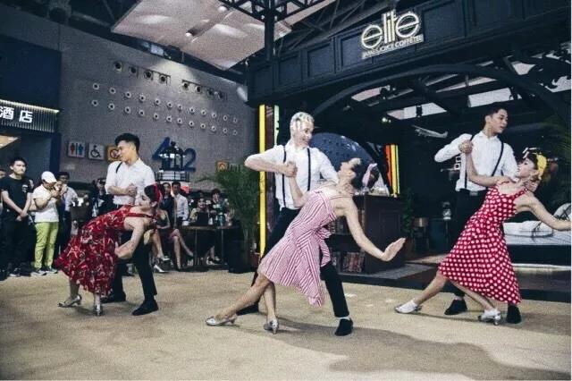一班身著復(fù)古裝束的表演者,在喆啡展區(qū)內(nèi)通過精彩絕倫的表演,給人帶來一場視覺盛宴。讓觀眾仿佛置身于百老匯歌舞劇之中,與喆啡展區(qū)的復(fù)古設(shè)計(jì)融合在一起,毫無違和感。