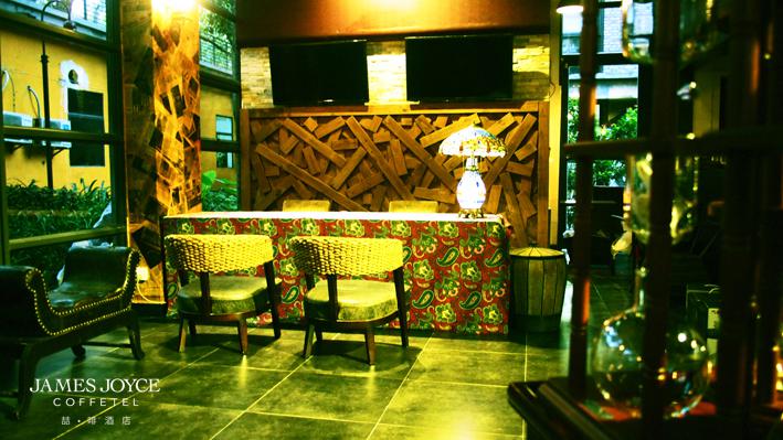 推開深棕色的大門,進入James Joyce Coffetel,散發著一股馥郁的"咖啡"香薰,彌漫著CD的低吟淺唱,油燈般柔和的燈光。整個空間以沉穩、優雅、溫馨的色系,作為其裝潢特色,采用古樸的材質,通過混搭的軟裝襯托喆啡的獨特,這包括半自助式24小時的咖啡廳、網絡同步的留言板、各種藝術擺件等等。這一切皆為您創造出充滿人文、社交、格調的氛圍。為您提供一個擺脫旅途勞累的休憩之所,尋找“旅途中的啡凡存在”。